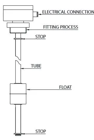 The floating stay within a toroidal magnet, whose field operates, without physical contact, small reed contacts placed inside the pipe flow (see Fig.1). The drive of these contacts allows the integration or gradual shutdown of the resistance, also placed inside the pipe flow, allowing the continuous reading of liquid level. Resistive signal thus generated can be directly used by devices that accept inputs well structured, or through a converter Ohm - 4/20mA can drive most of the electronic devices on the market (PLC).